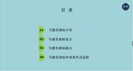 最后是来自深圳市君胜知识产权代理事务所国际部商标王经理,他分享了关于《商标国际注册马德里协定》的知识。他主要从马德里商标介绍、马德里商标优点、马德里商标缺点和马德里商标申请条件及流程四个维度介绍马德里商标。他也特别强调了马德里商标申请的优势在于:1. 覆盖多个国家(主要成员国超过120个);2. 文件不需要公证认证;3. 不需要委托书;4. 申请、续展、变更、转让一次动作包含所有指定国家;5. 一个国际注册号,容易记录。